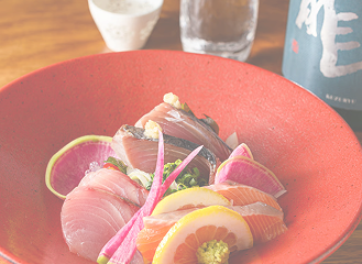 O'denbar うまみ では、四季折々旬の素材を活かした"たね"、昆布と鰹節から生まれる洗練された"だし"、全国各地の職人が造る"さけ"とともに「至福のひととき」を提供します
